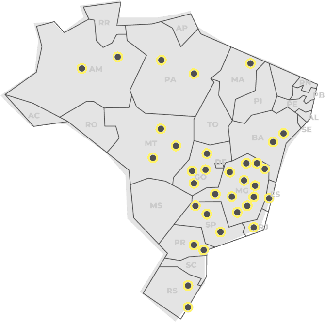 Locamos para todo território nacional, com apoio logístico e gestão operacional distribuídos por todo Brasil.
